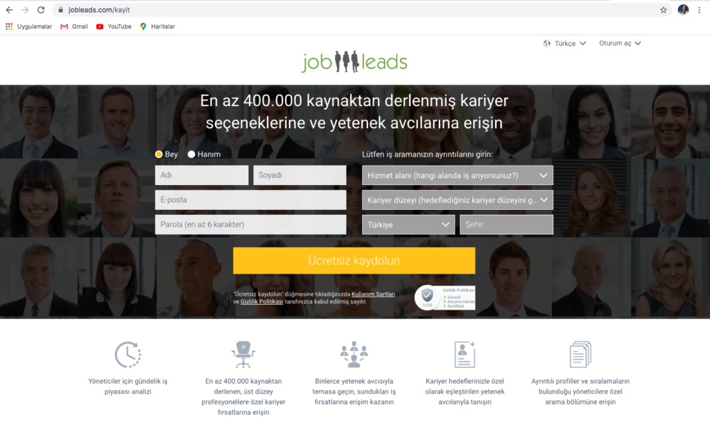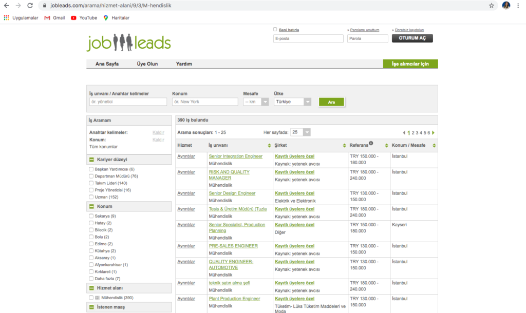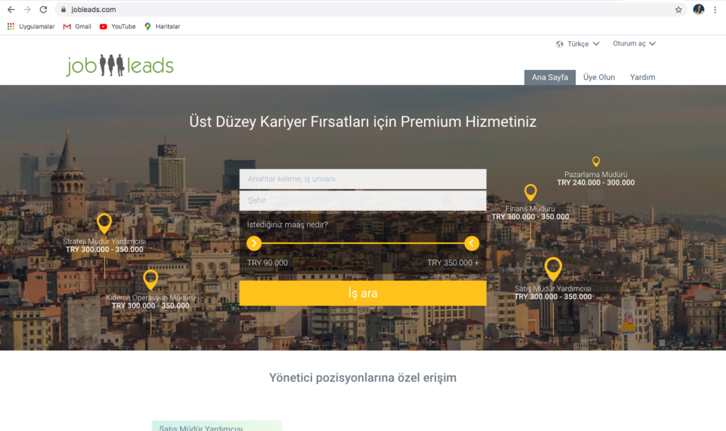 Üye olmadan iş ilanlarını size göstermiyor. İlanlarını okumak için üye olmanız gerekiyor. Eğer yönetici seviyesinde iş arıyorsanız (ya da yönetici olmayan roller de olabilir, üye olmadan genel olarak baktığımda yönetici olmayan rollere de rastladım) Her koşulda pozisyon aramak için bu site de kullanılabilir.