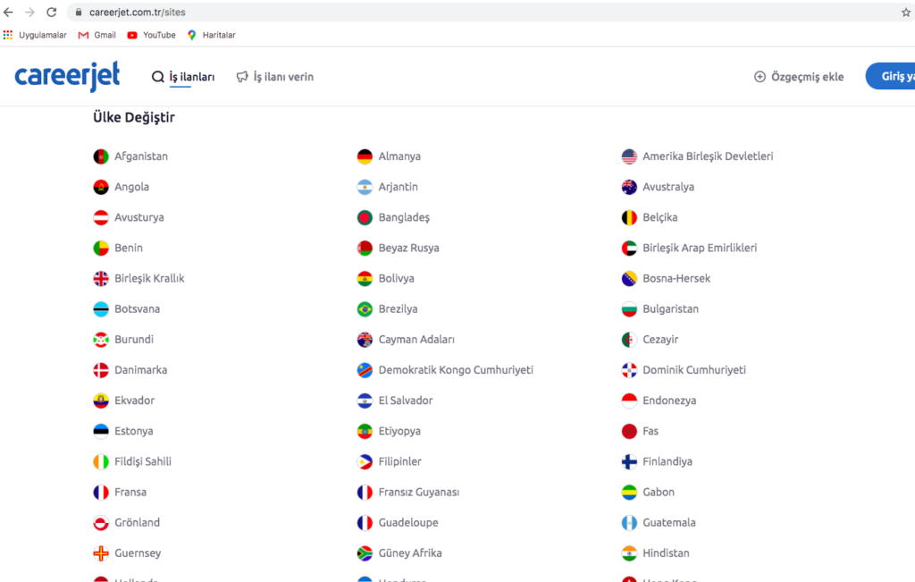 Sadece Türkiye değil, istediğiniz başka ülkeler de varsa, ilgili ülkeye tıklayarak o ülkenin ilanlarını da tarayabilirsiniz.